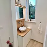A Creekside House K Apartman fürdőszobája hajszárítóval, törölközőkkel és papucsokkal felszerelt. Továbbá bidé, külön WC és zuhanyzó szintén elérhető.